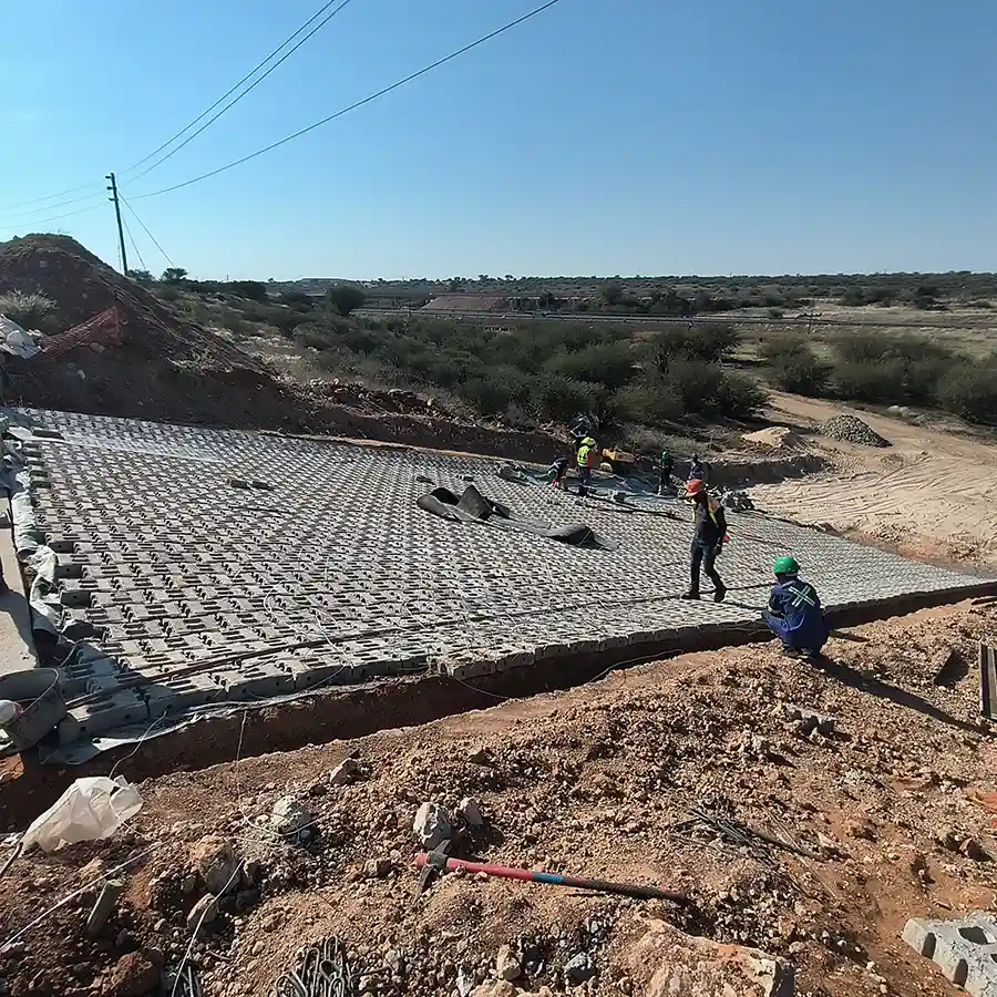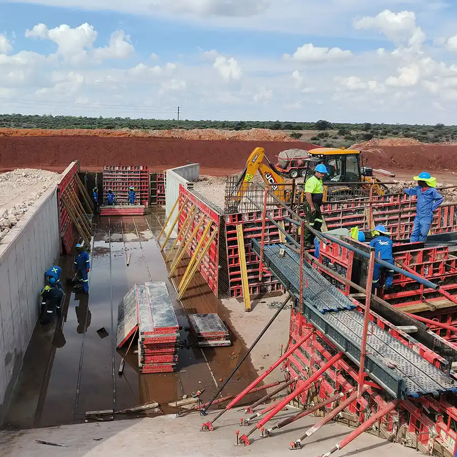 In the first phase of this project, a 65 000 m³ HDPE-lined pollution control dam (PCD) was constructed, complete with concrete inlet works, a silt trap, an overflow structure, and a leak detection system. The next phase involved the implementation of a network of run-off management channels and culverts across the mine to manage stormwater effectively and ensure environmental compliance. Delta BEC’s engineering expertise was vital in optimising the mine’s water management systems for sustainable operations.